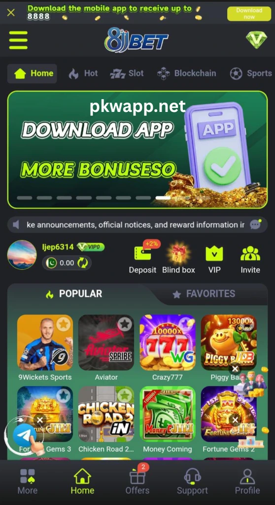 8JJ Bet Game is a very popular casino style app in Pakistan. It offers many games like slots, card games, lucky spin, and color prediction. This app is simple, smooth, and easy for beginners.